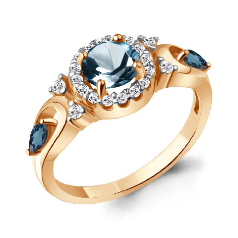 6695708А Кольцо из Серебра с топазами лондон блю, фианитами