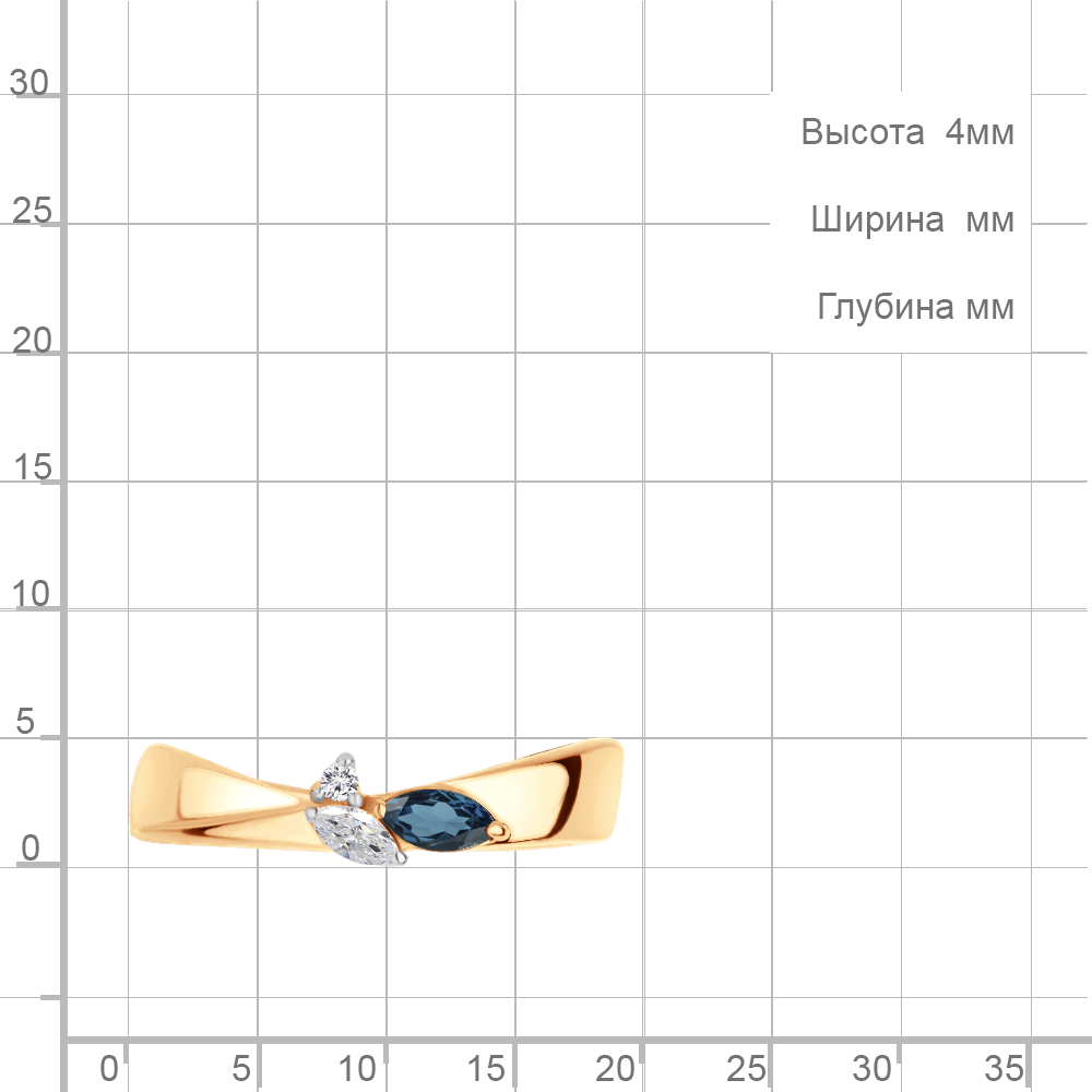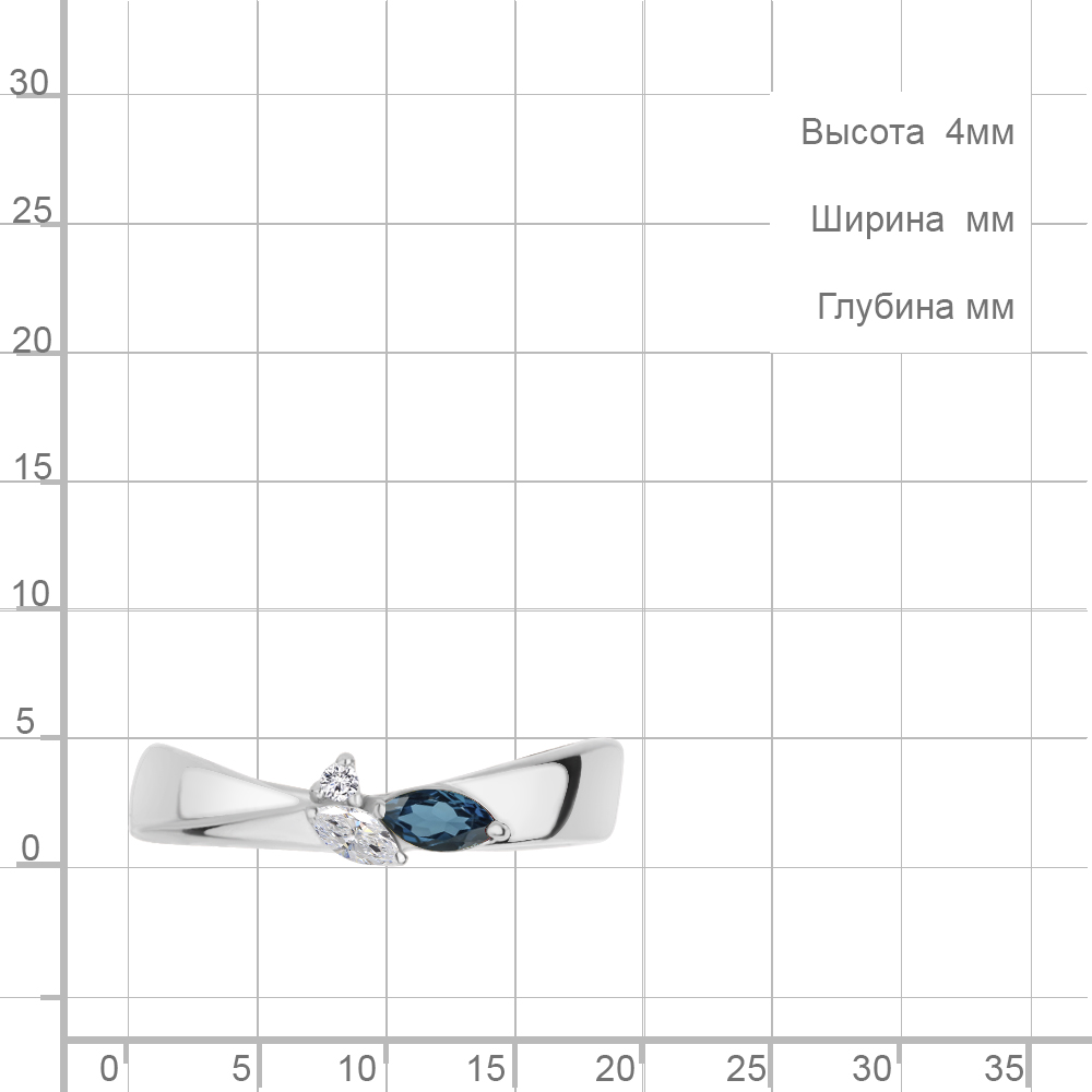 Описание камней 1 Топаз Лондон Блю; 1 Фианит; 1 Фианит