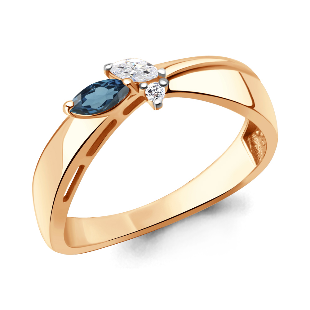 6695808А Кольцо из Серебра с топазом лондон блю, фианитами