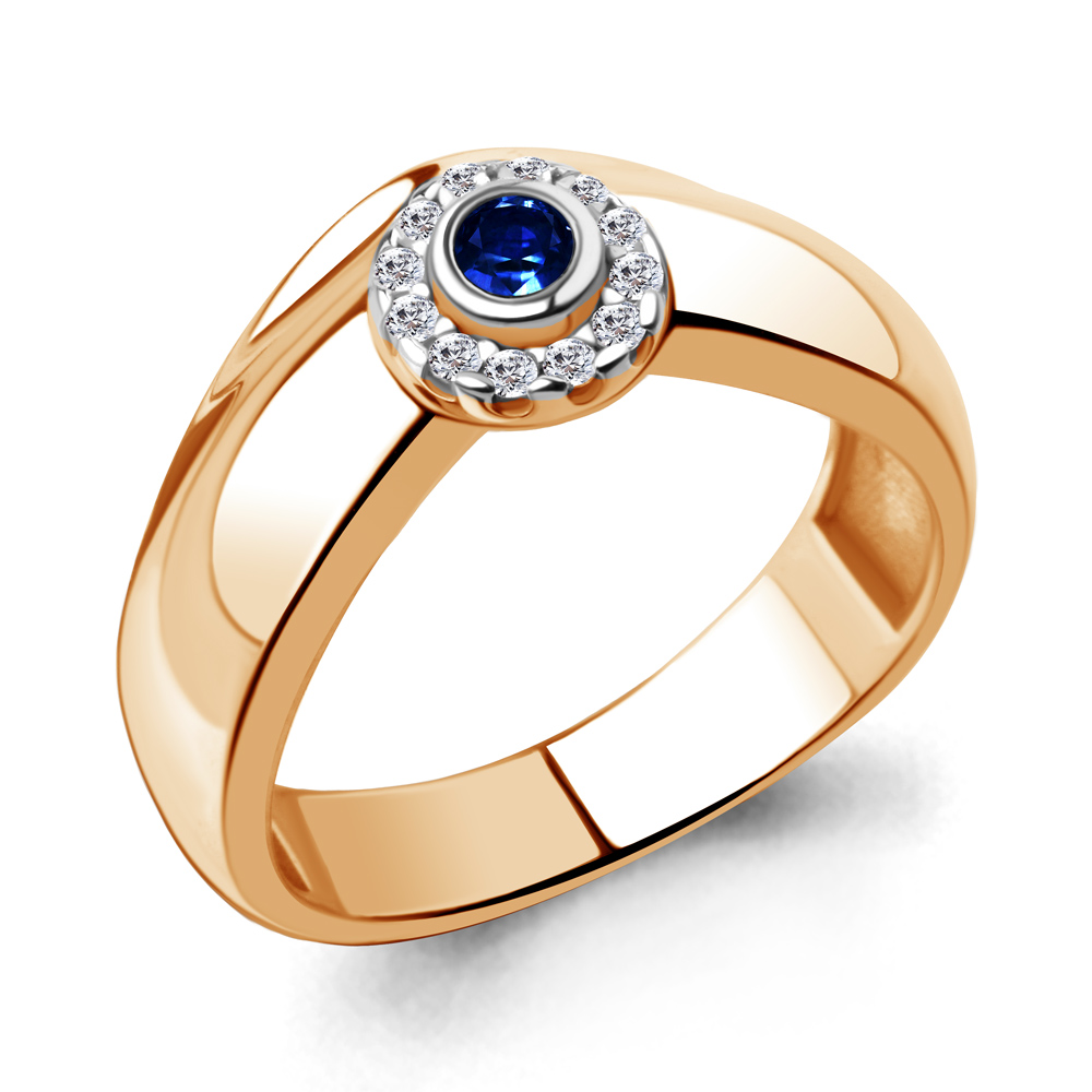67248АБ Кольцо из Серебра с наносапфиром, фианитами из коллекции "Клеопатра"