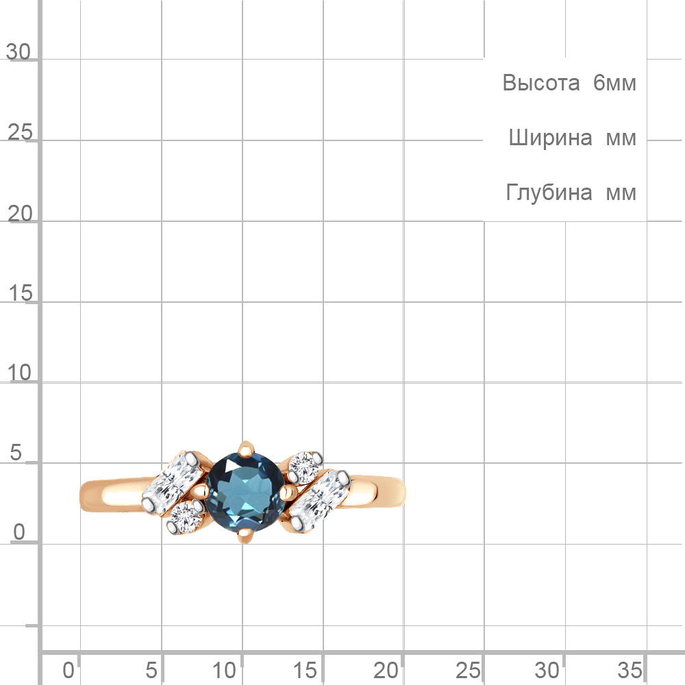 6726508А Кольцо из Серебра с топазом лондон блю, фианитами