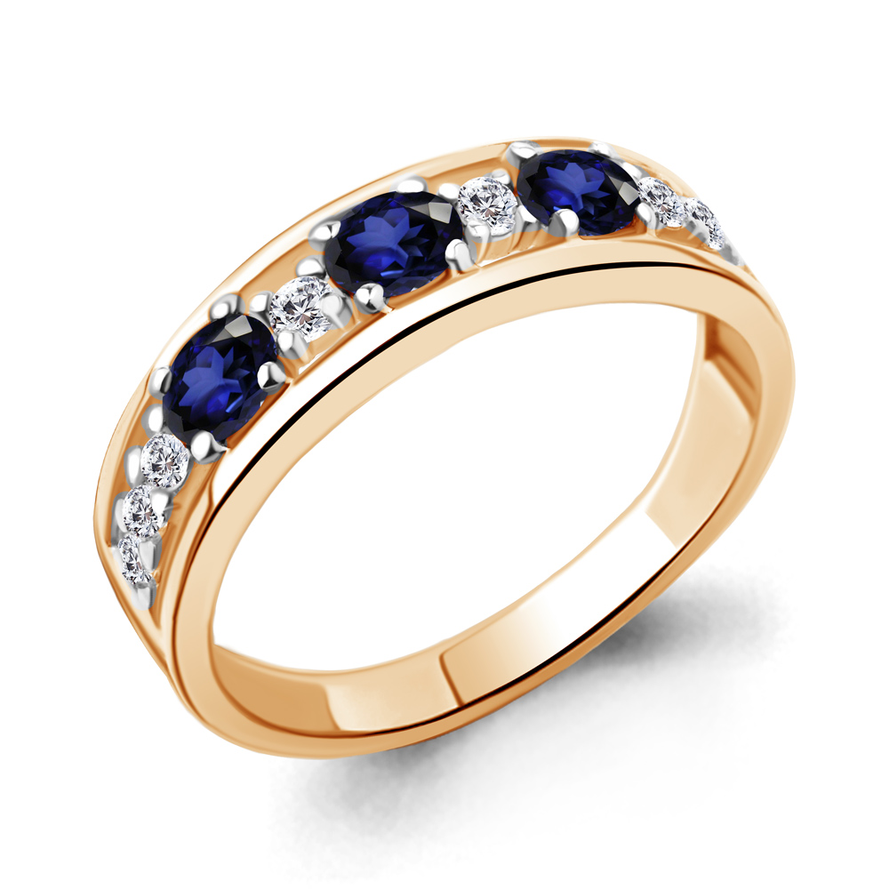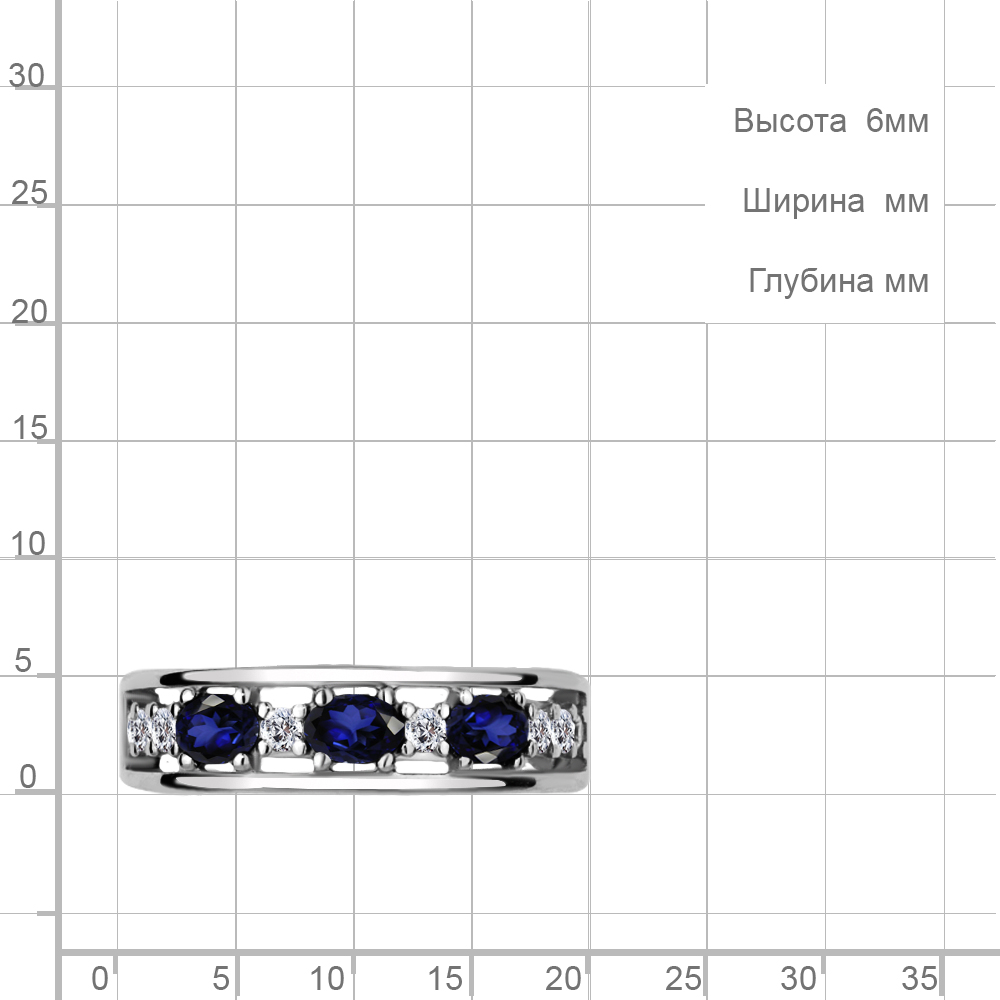 67370АБ Кольцо из Серебра с наносапфирами, фианитами из коллекции "Клеопатра"