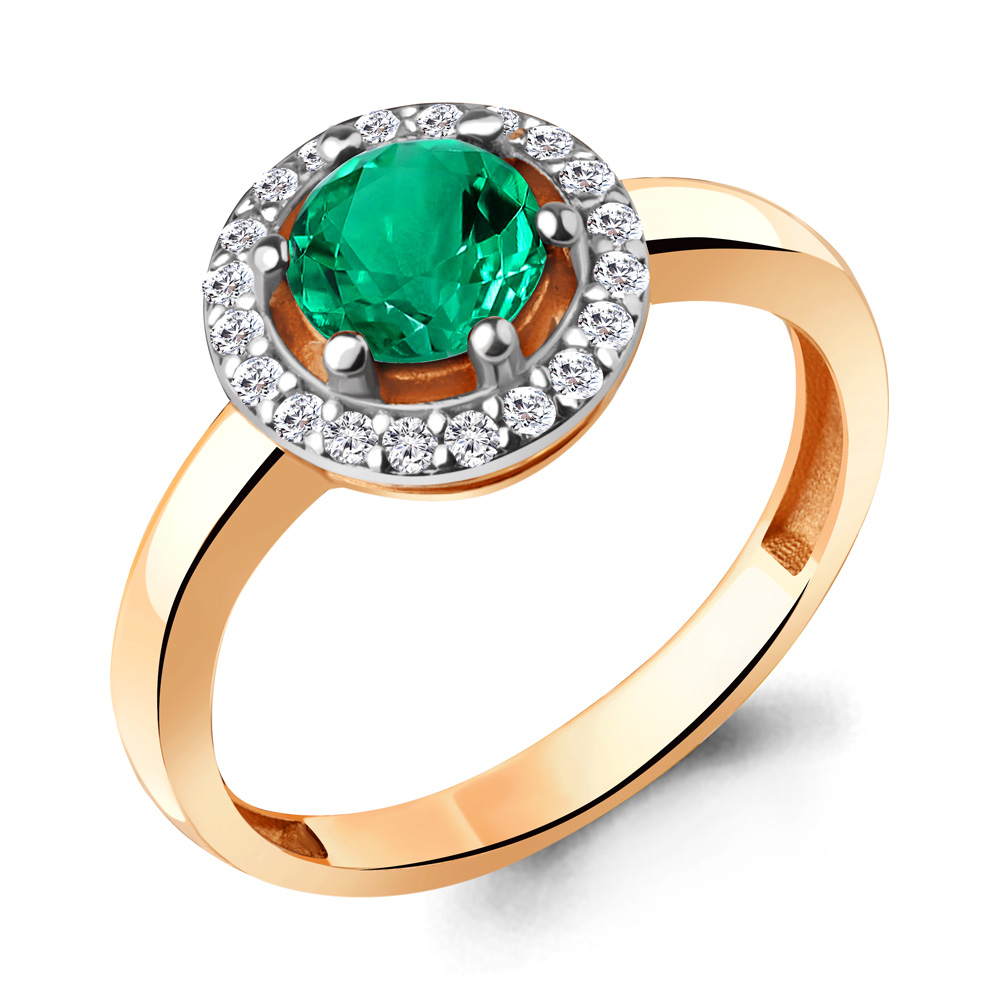 67403АГ Кольцо из Серебра с наноизумрудом, фианитами из коллекции "Клеопатра"