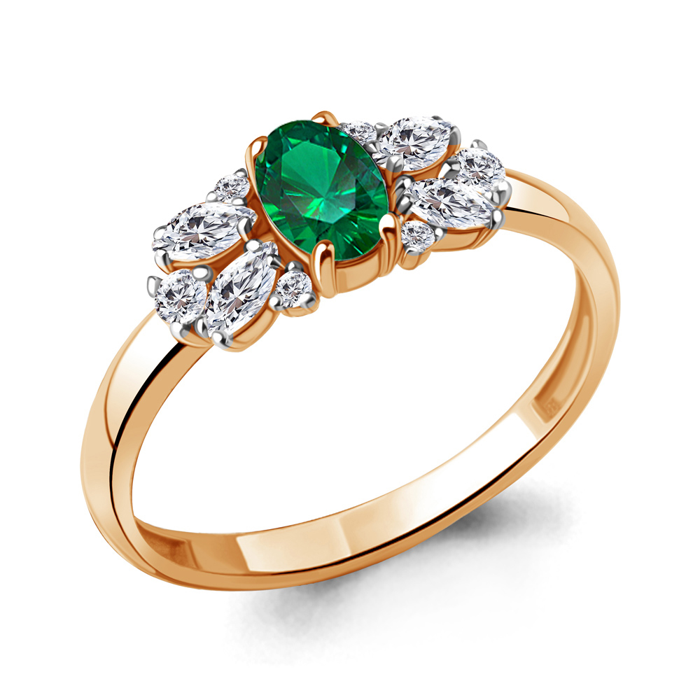 67412АГ Кольцо из Серебра с наноизумрудом, фианитами из коллекции "Клеопатра"
