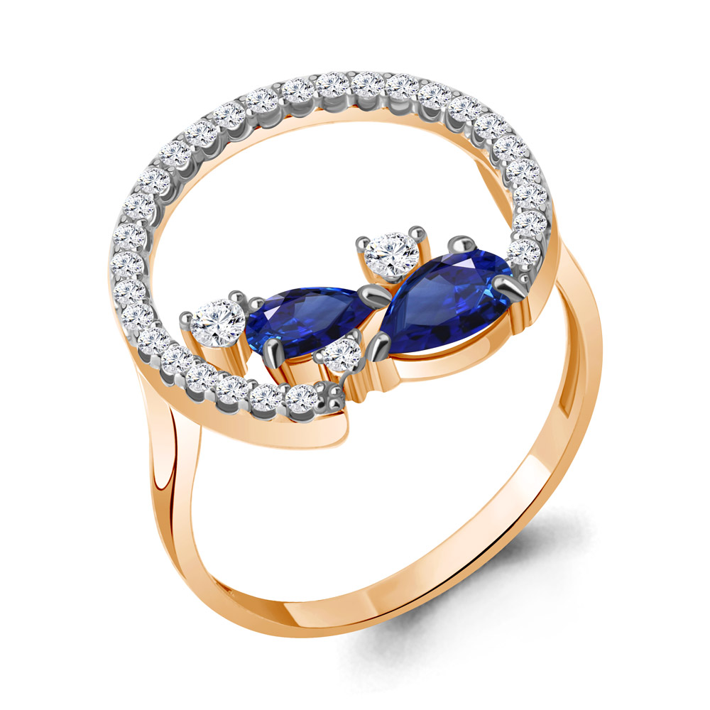 67731АБ Кольцо из Серебра с наносапфирами, фианитами из коллекции "Клеопатра"