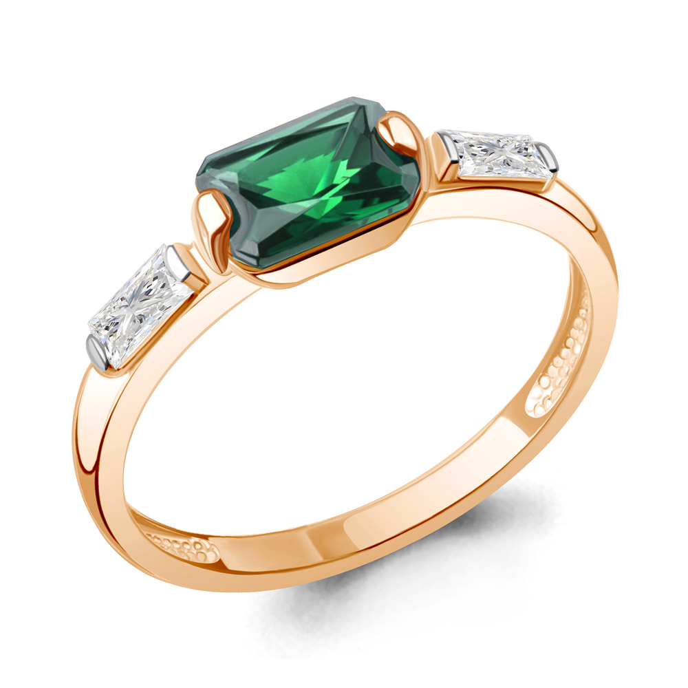67835П Кольцо из Серебра с наноизумрудом, фианитами из коллекции "Клеопатра"