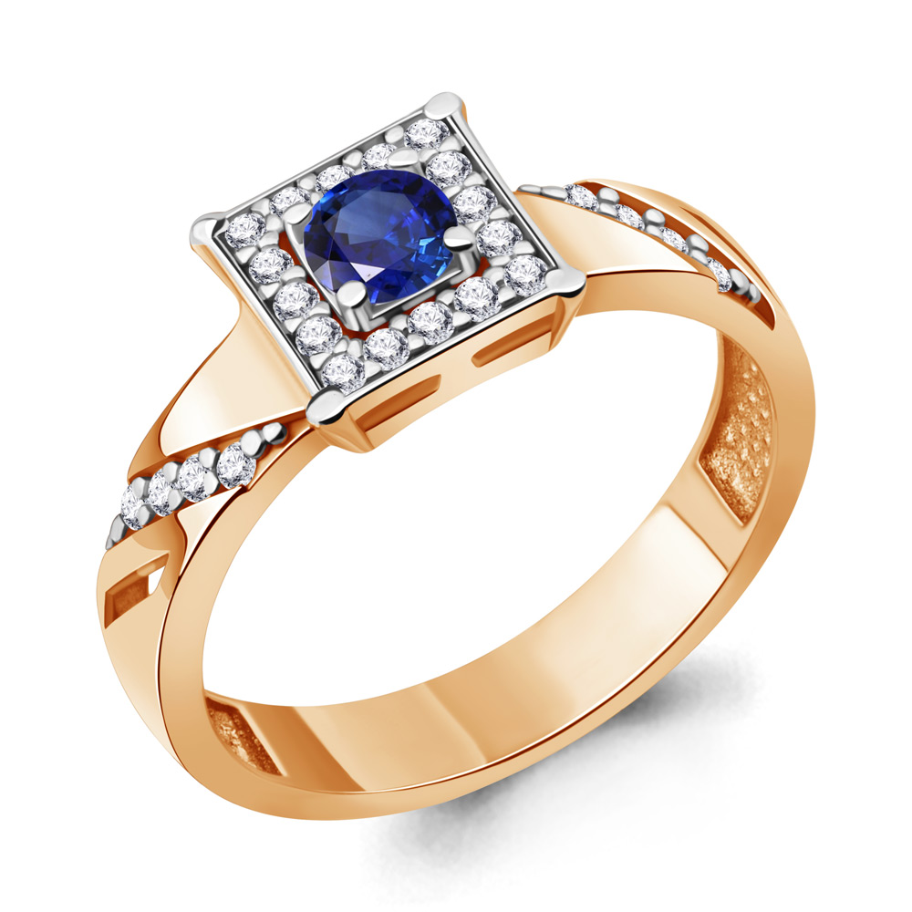 67966АБ Кольцо из Серебра с наносапфиром, фианитами из коллекции "Клеопатра"