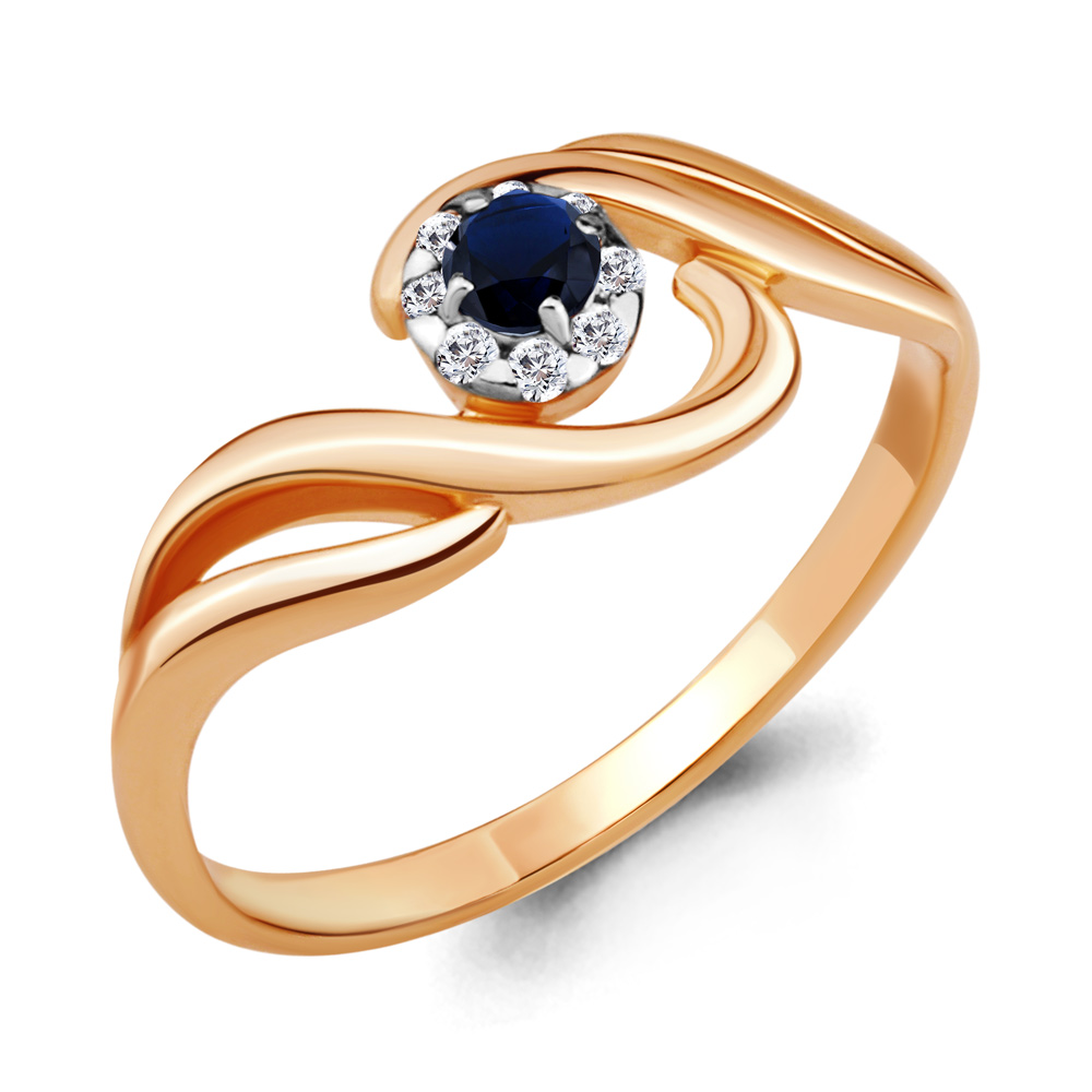 68213Б Кольцо из Серебра с наносапфиром, фианитами