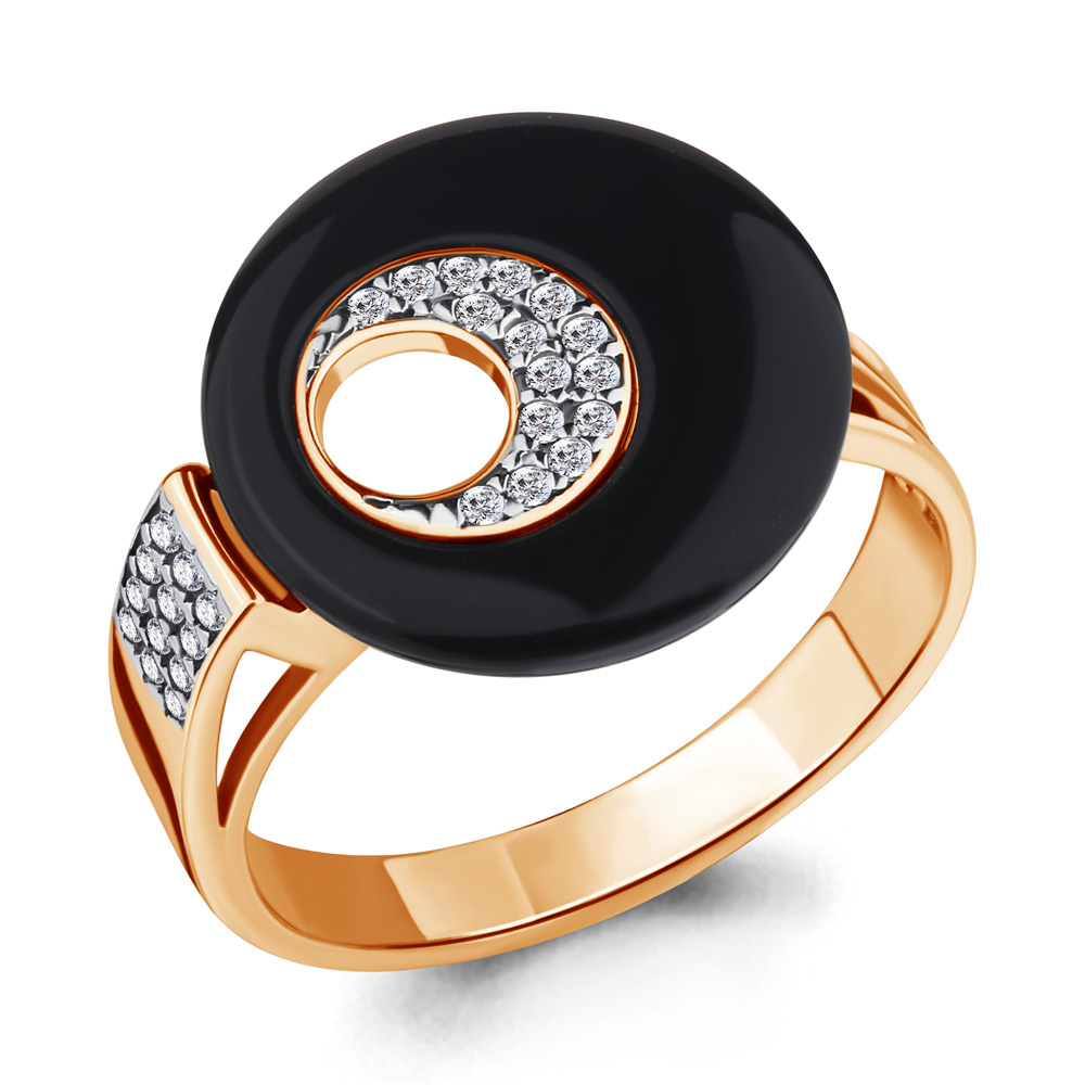 68406А Кольцо из Серебра с керамическим покрытием, фианитами