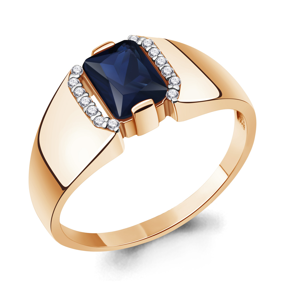 68428АБ Кольцо из Серебра с наносапфиром, фианитами из коллекции "Клеопатра"