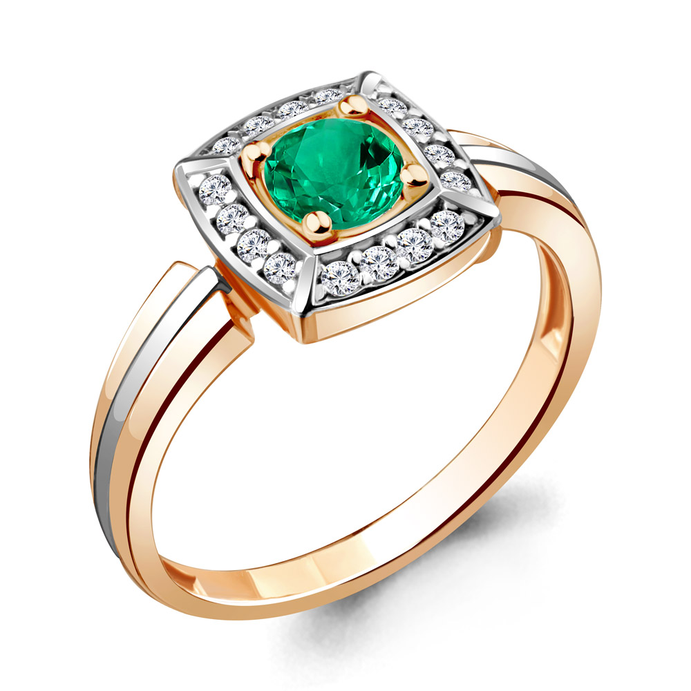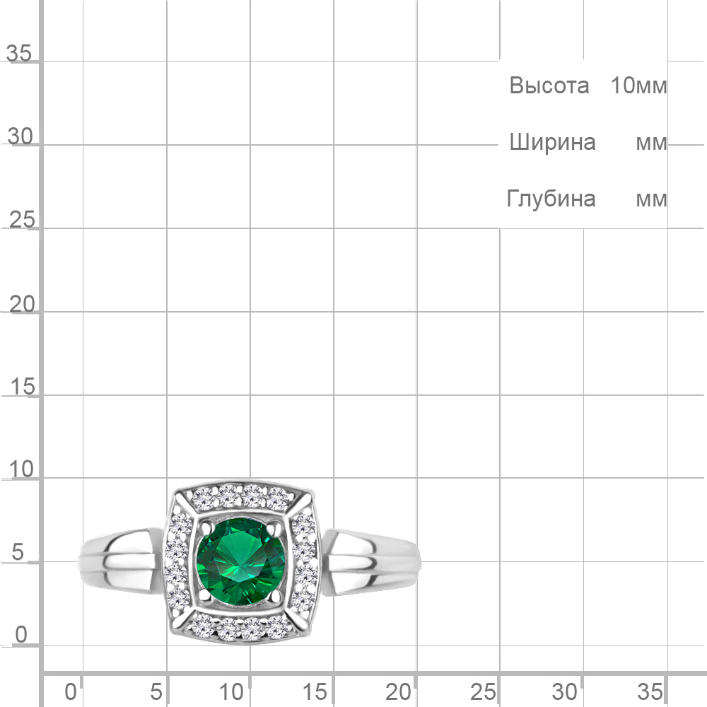 68745АГ Кольцо из Серебра с наноизумрудом, фианитами из коллекции "Клеопатра"