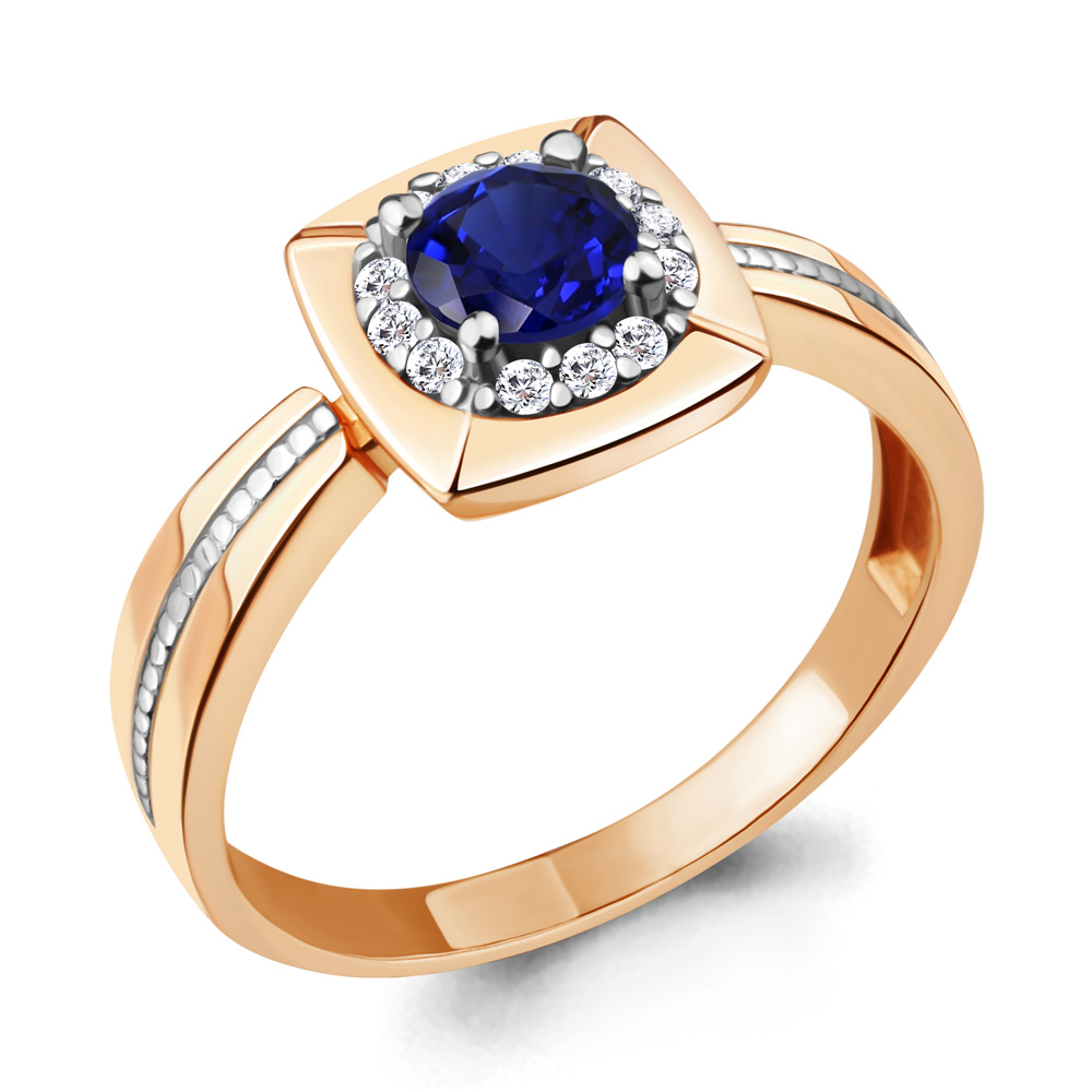 68746АБ Кольцо из Серебра с наносапфиром, фианитами из коллекции "Клеопатра"