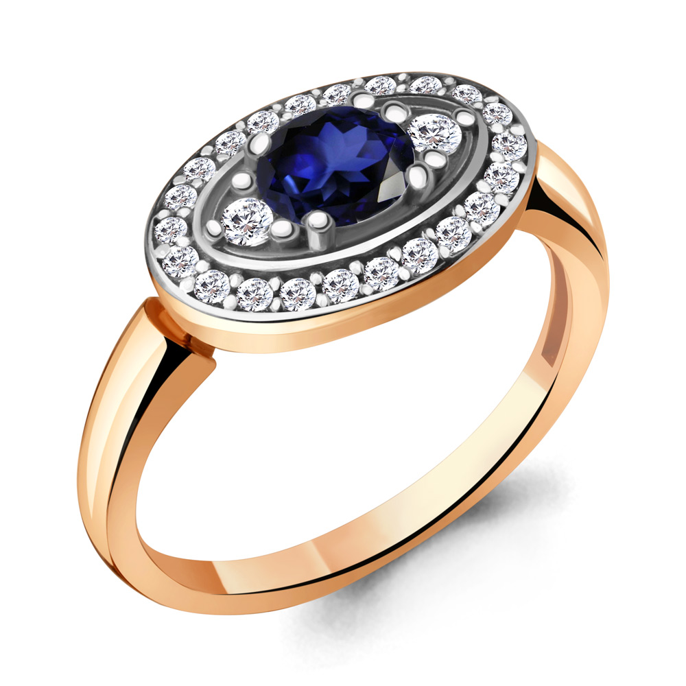 68747АБ Кольцо из Серебра с наносапфиром, фианитами из коллекции "Клеопатра"