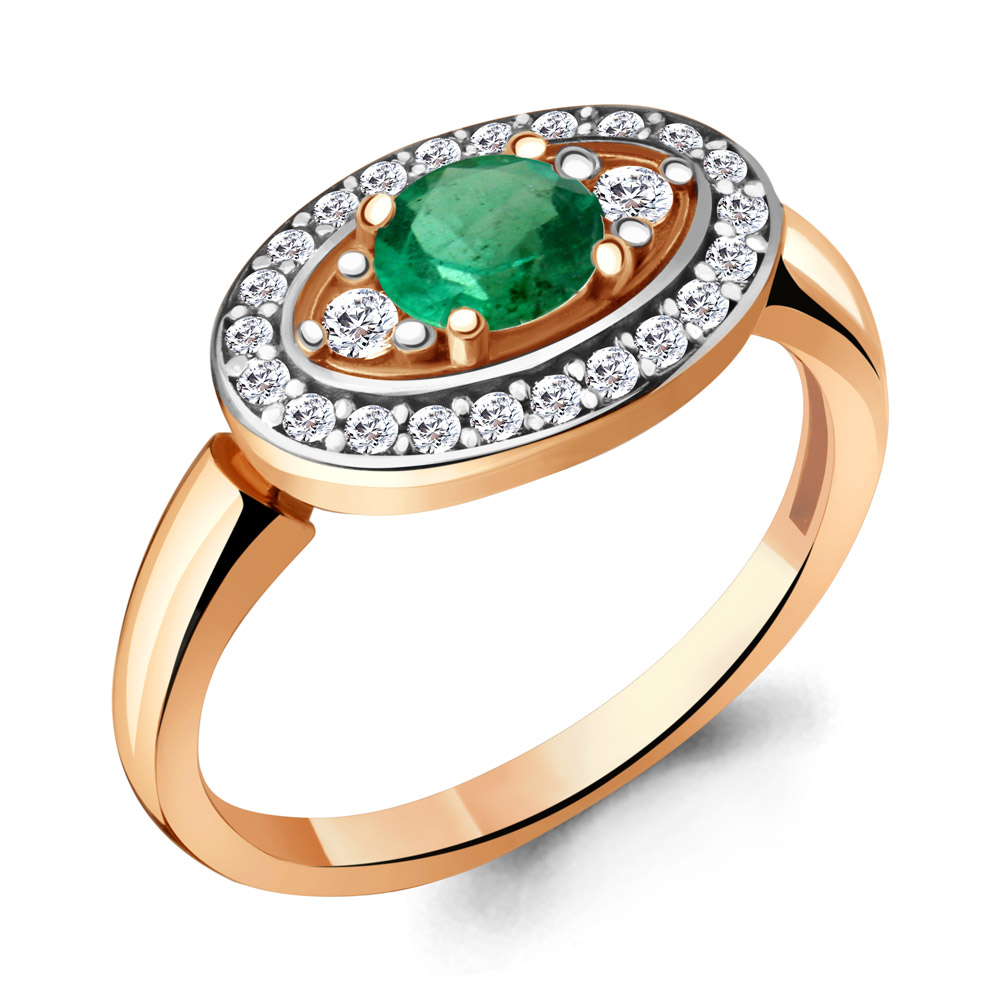 68747АГ Кольцо из Серебра с наноизумрудом, фианитами из коллекции "Клеопатра"