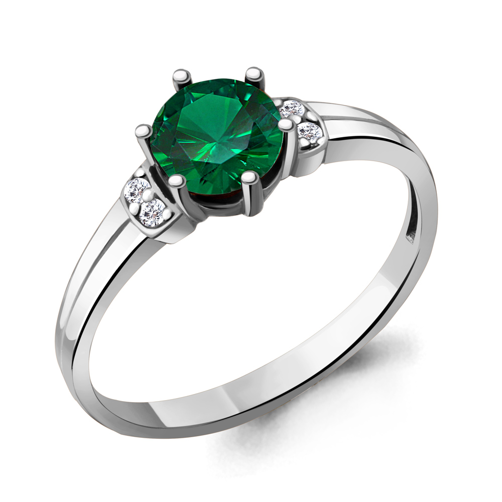 68785П Кольцо из Серебра с наноизумрудом, фианитами из коллекции "Клеопатра"