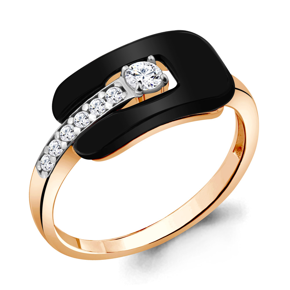 68799А Кольцо из Серебра с керамическим покрытием, фианитами