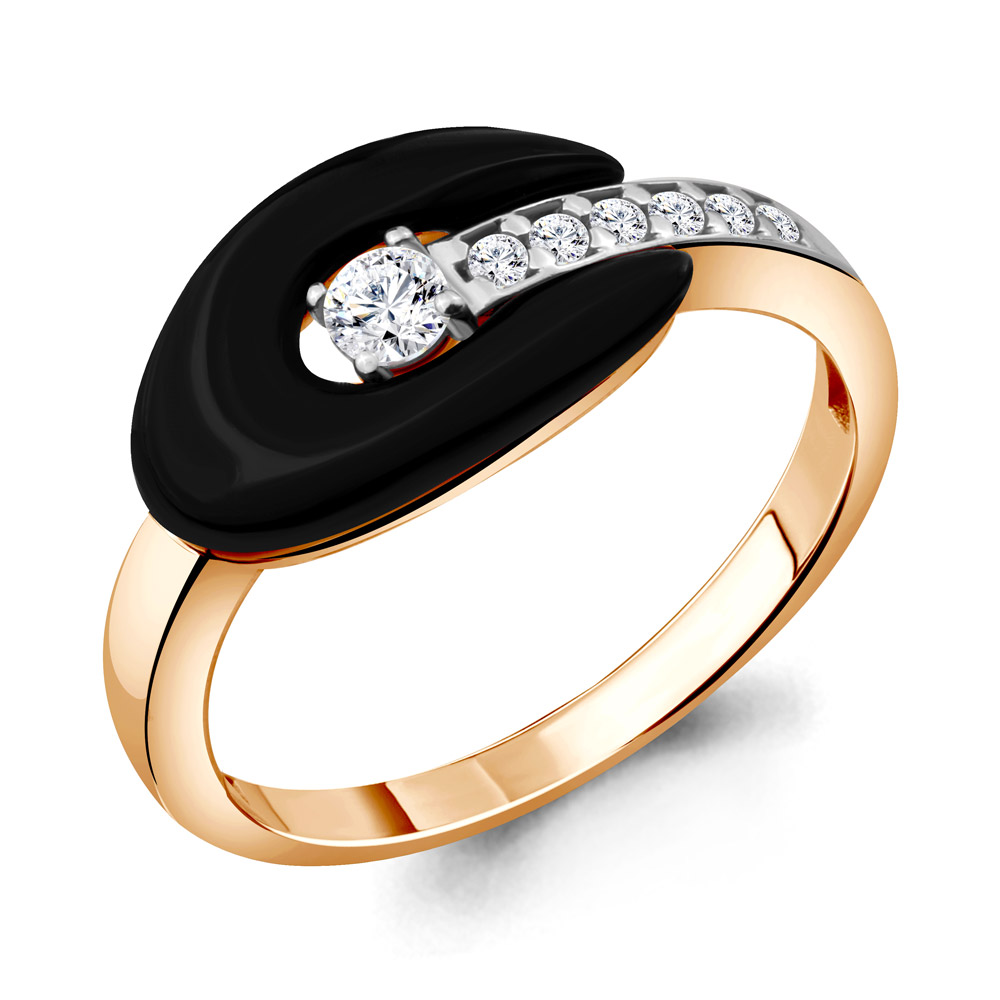 68800А Кольцо из Серебра с керамическим покрытием, фианитами