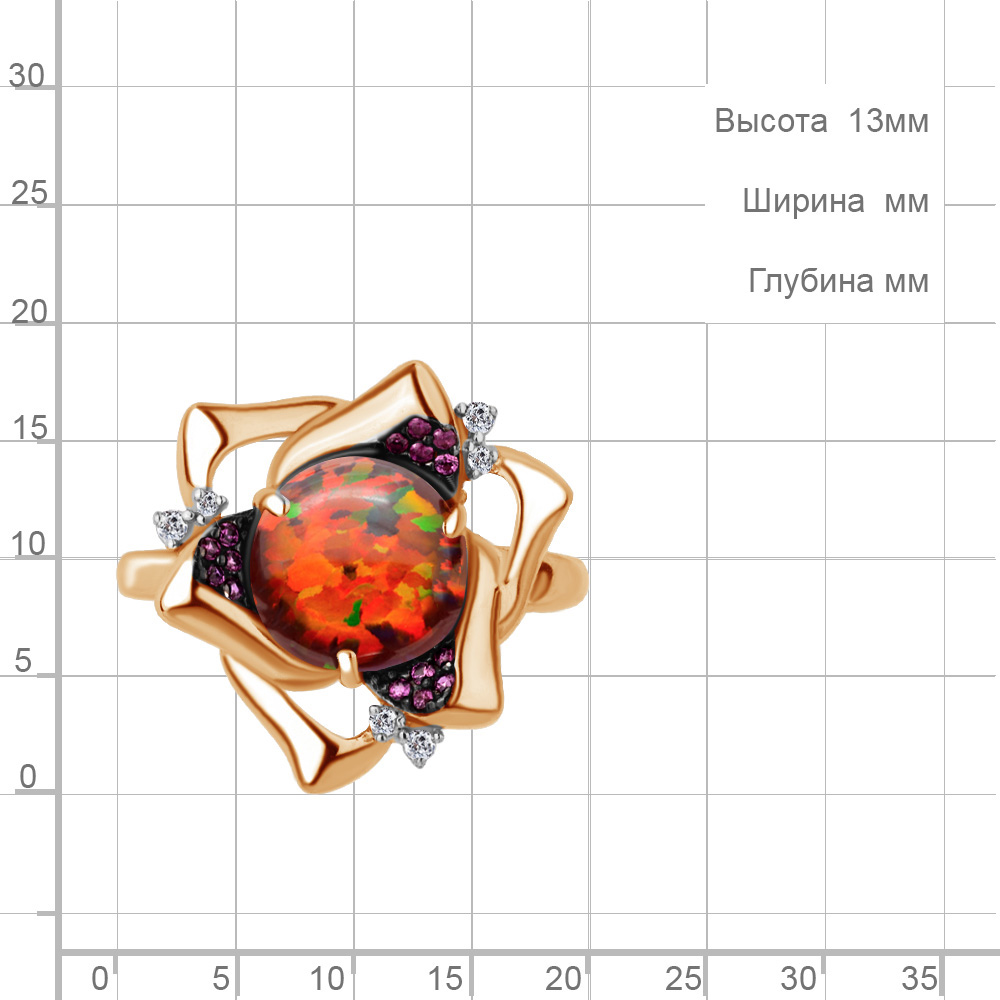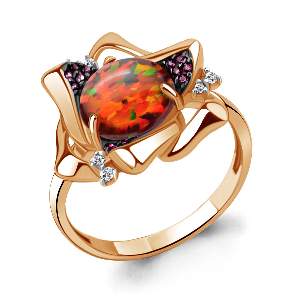 6900187В Кольцо из Серебра с нанотурмалинами, опалом иск., фианитами