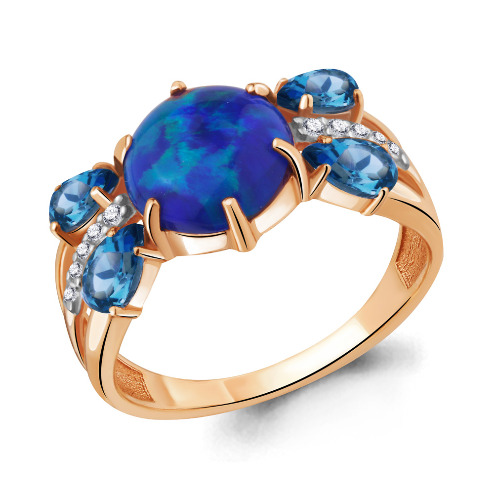 6900495А Кольцо из Серебра с опалом иск., топазами лондон блю, фианитами