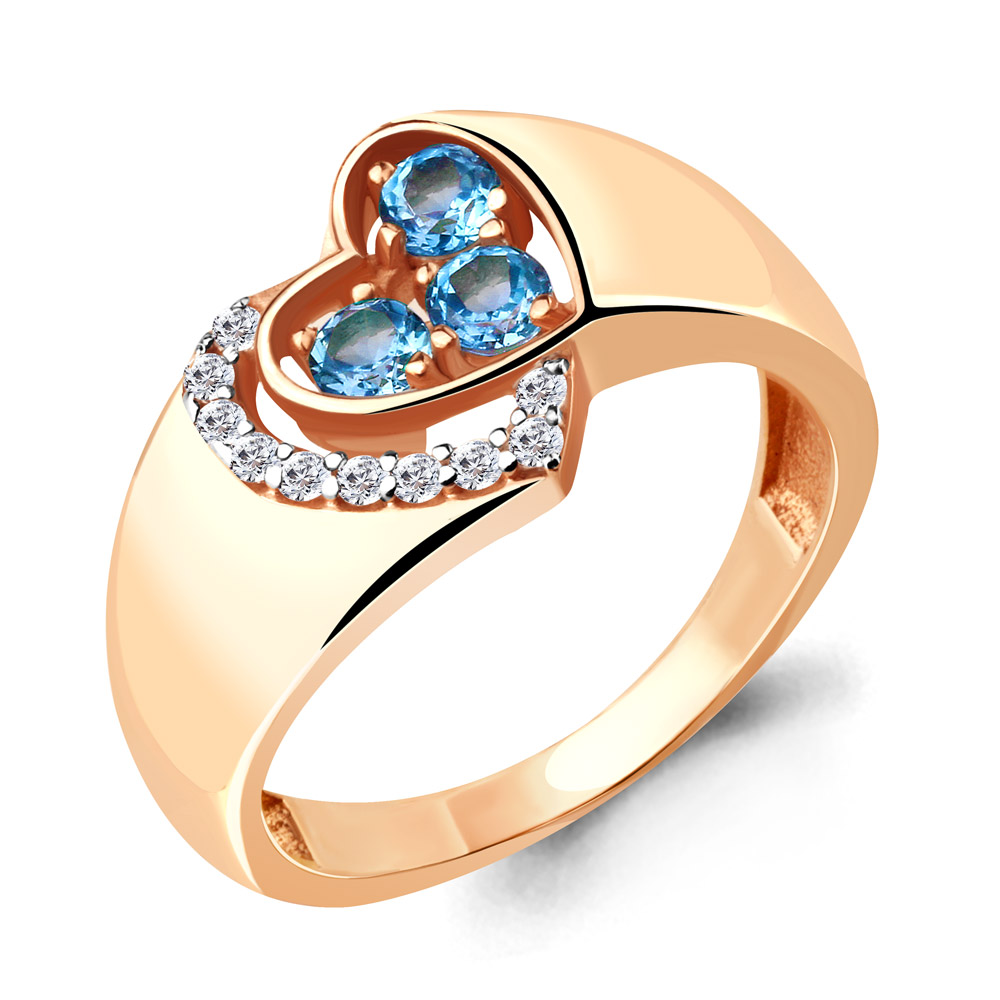 6901205А Кольцо из Серебра с топазами свисс блю, фианитами