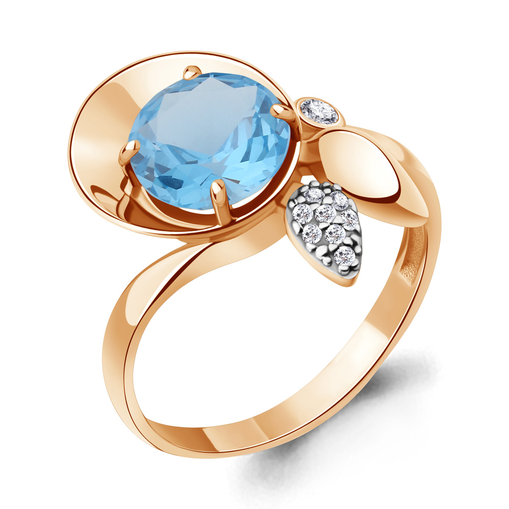 6901992А Кольцо из Серебра с нанотопазом свисс, фианитами
