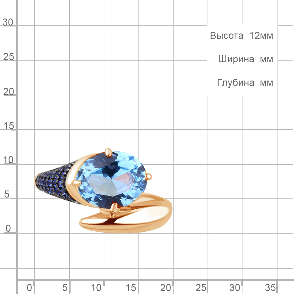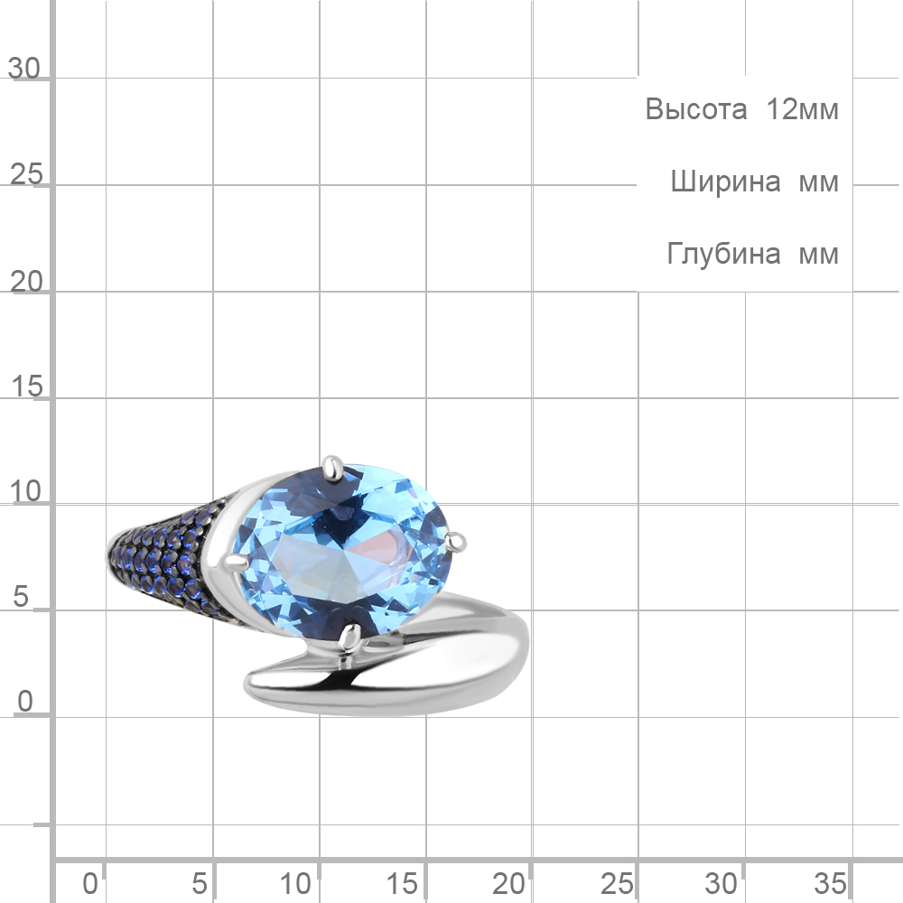 6902592Б Кольцо из Серебра с наносапфирами, нанотопазом свисс