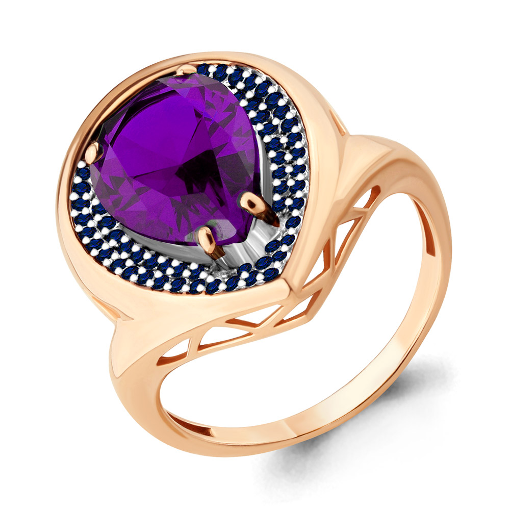 6903384Б Кольцо из Серебра с наноаметистом иск., наносапфирами