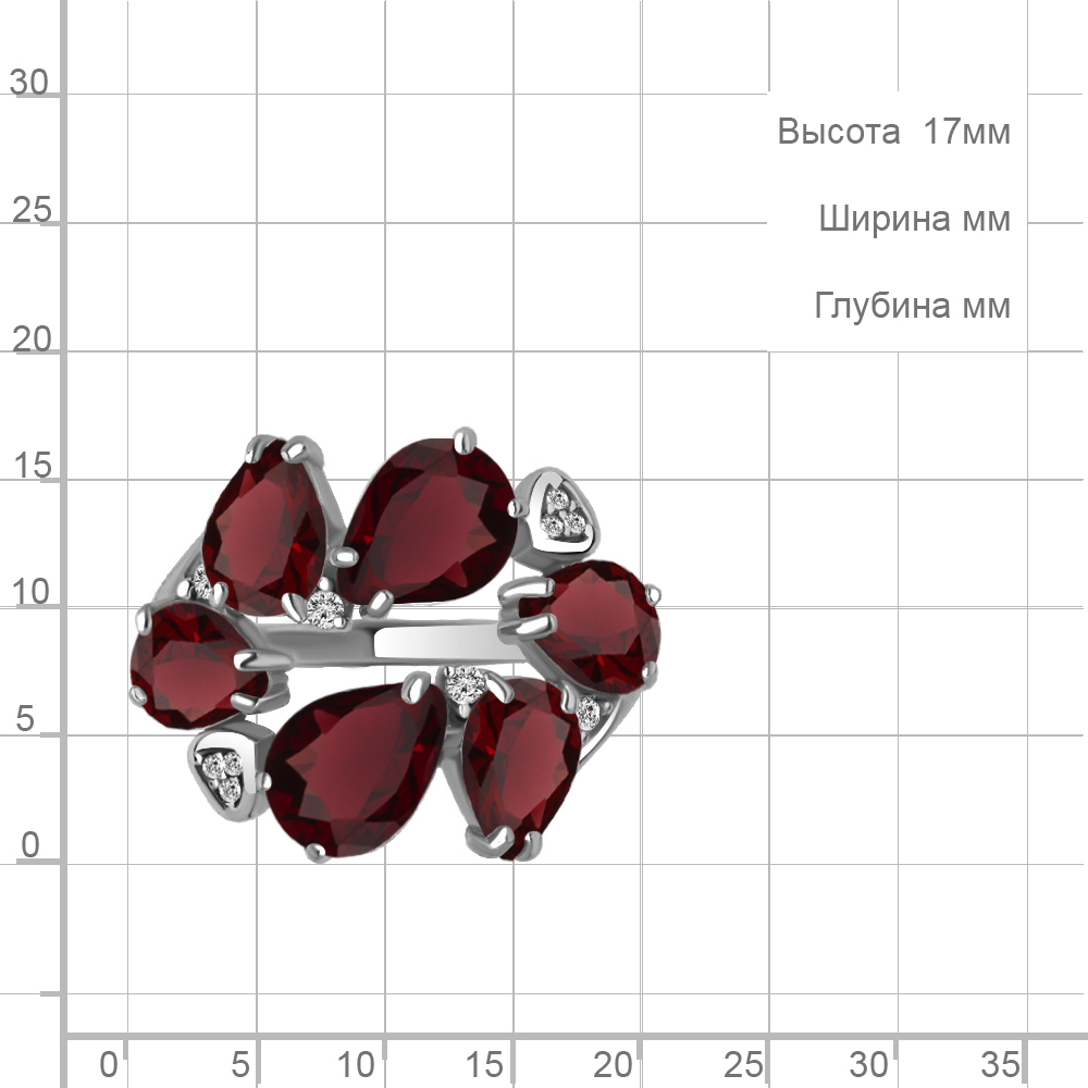 6905203А Кольцо из Серебра с гранатами, фианитами
