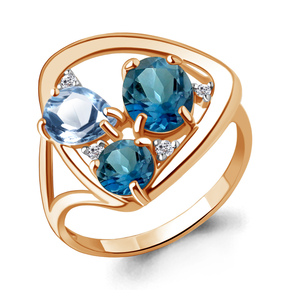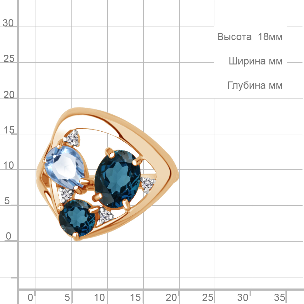6905462А Кольцо из Серебра с топазами лондон блю, топазом свисс блю, фианитами