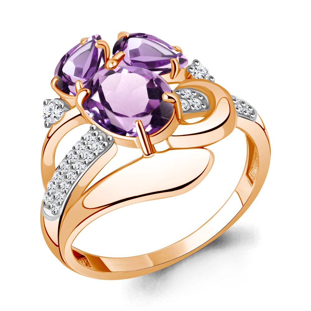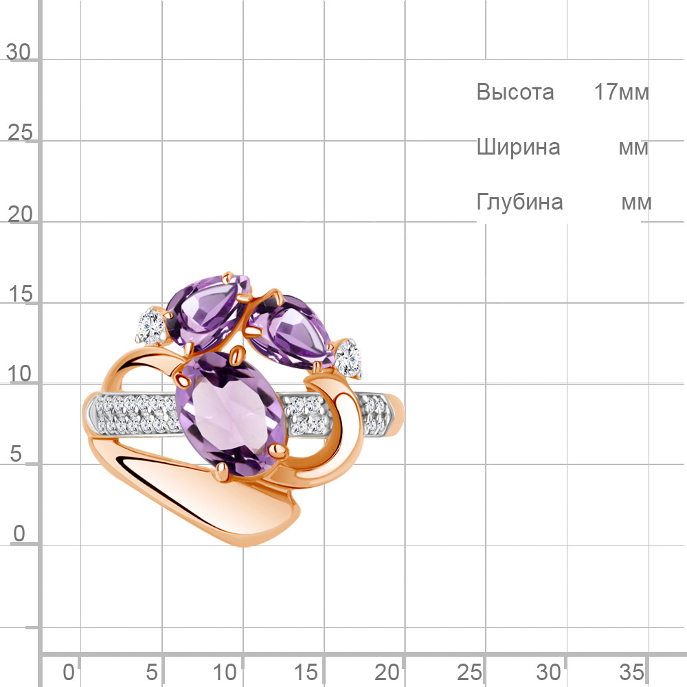 6907604А Кольцо из Серебра с аметистами, фианитами