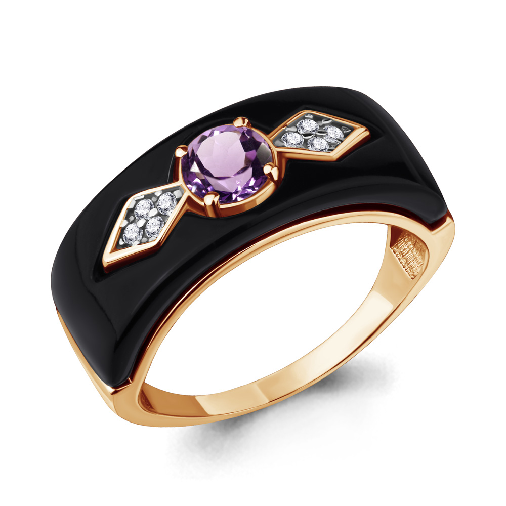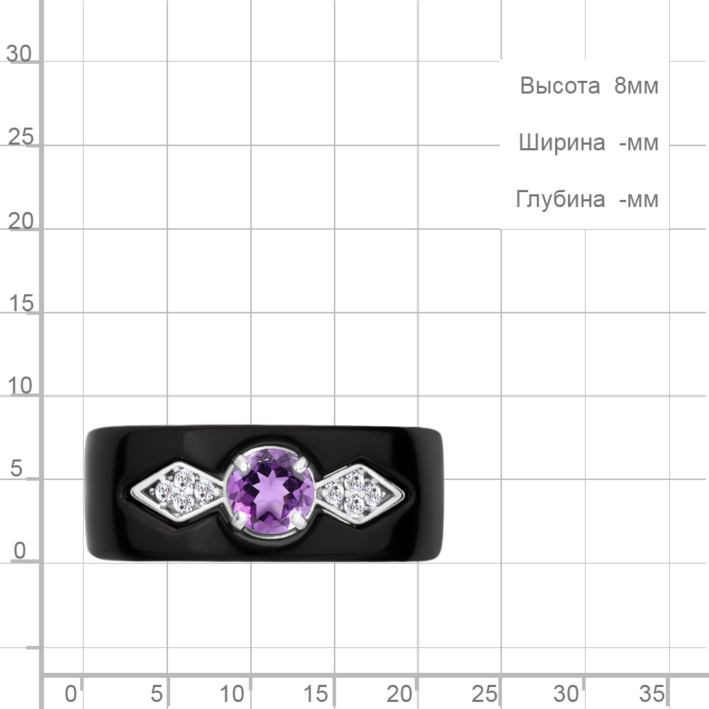 6910904А Кольцо из Серебра с аметистом, керамическим покрытием, фианитами из коллекции "Neo"