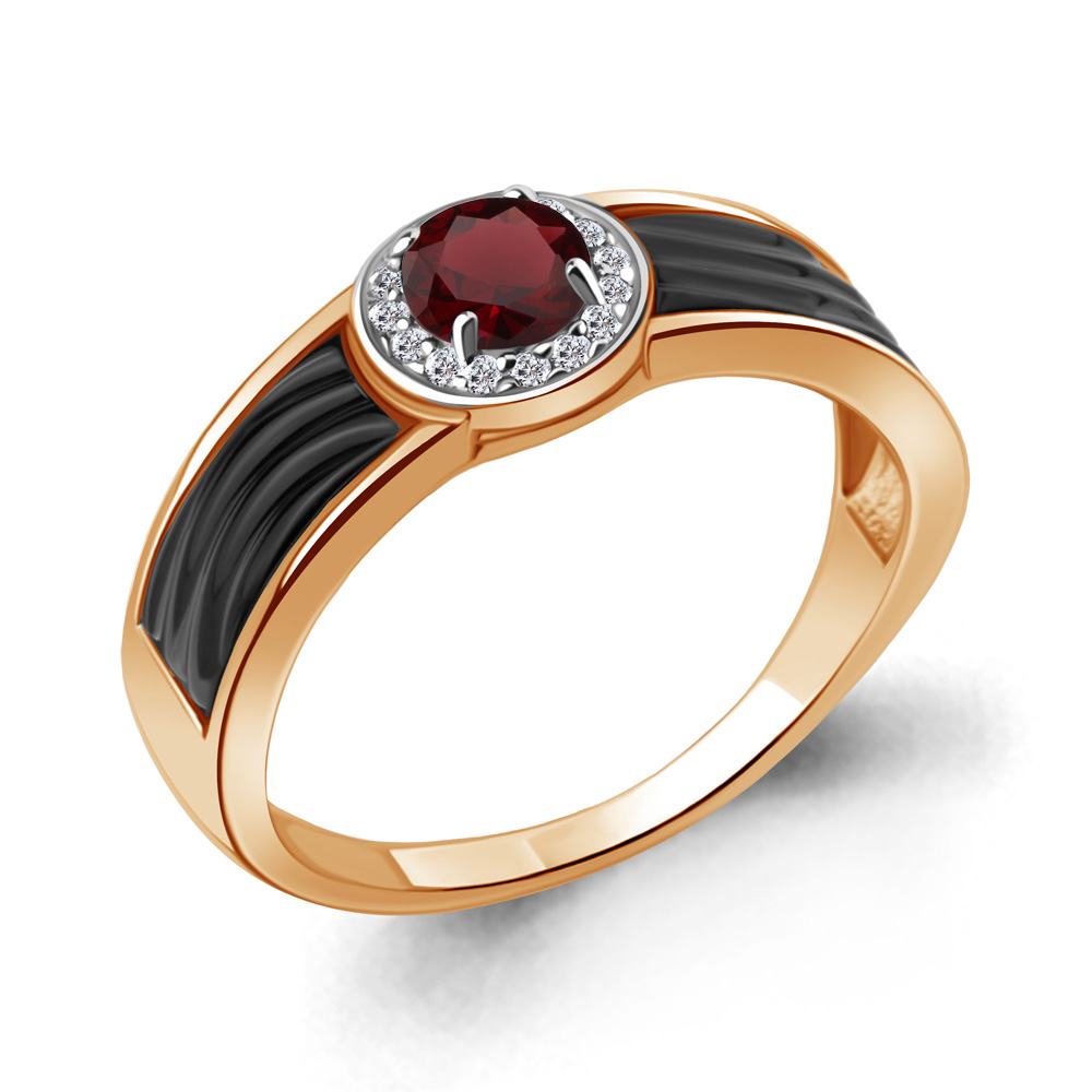 6911803А Кольцо из Серебра с гранатом, керамическим покрытием, фианитами из коллекции "Neo"