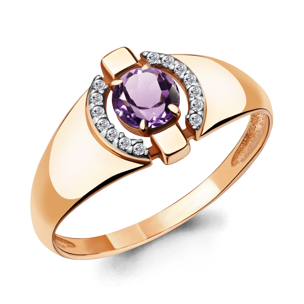 6912404А Кольцо из Серебра с аметистом, фианитами
