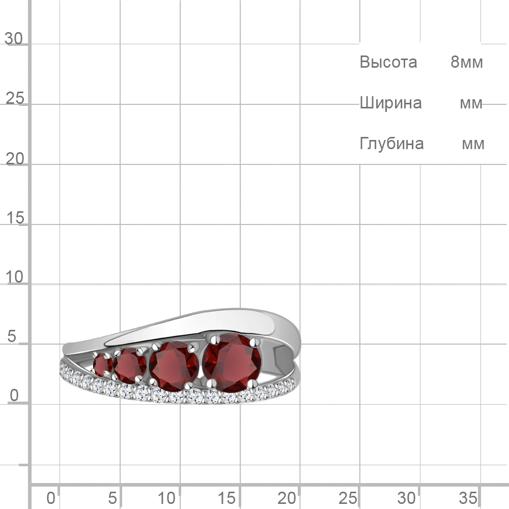 6913403А Кольцо из Серебра с гранатами, фианитами
