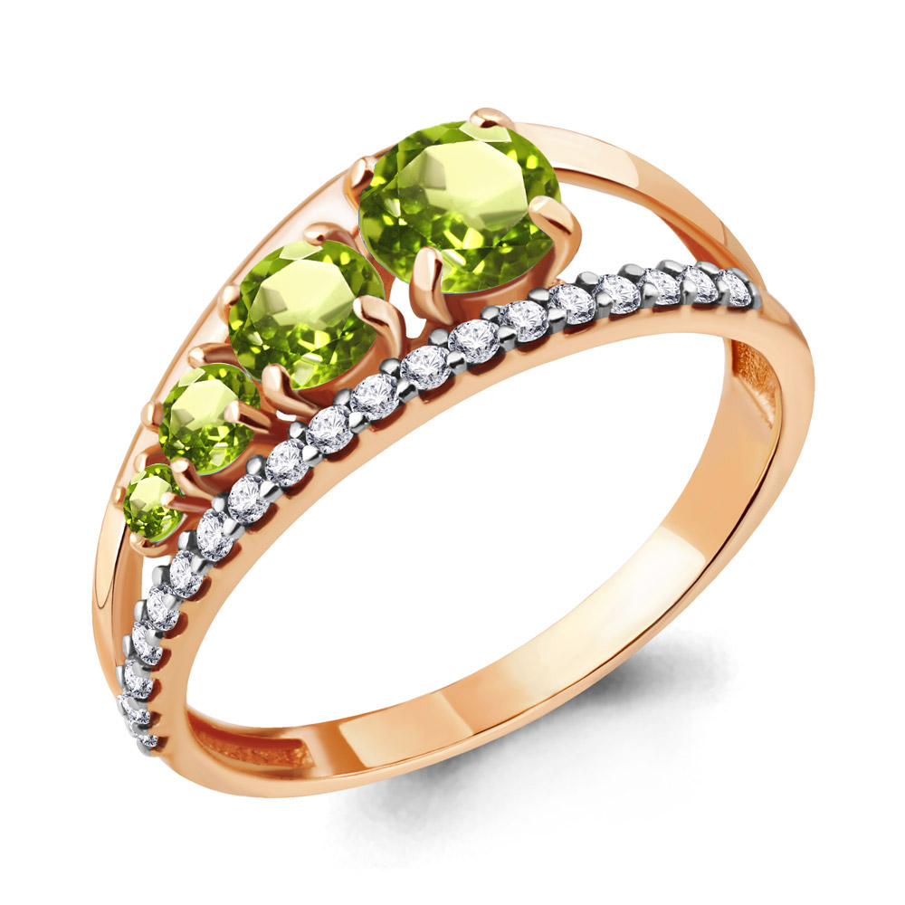 6913407А Кольцо из Серебра с фианитами, хризолитами