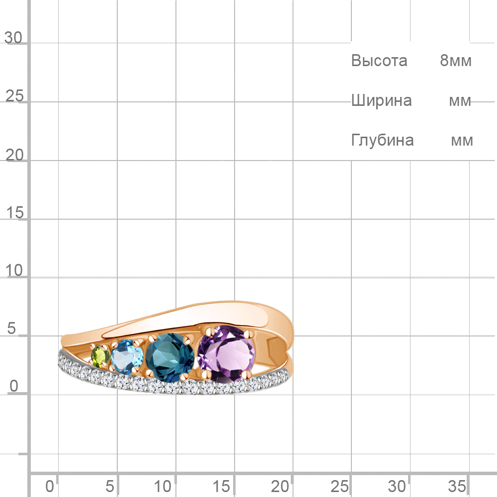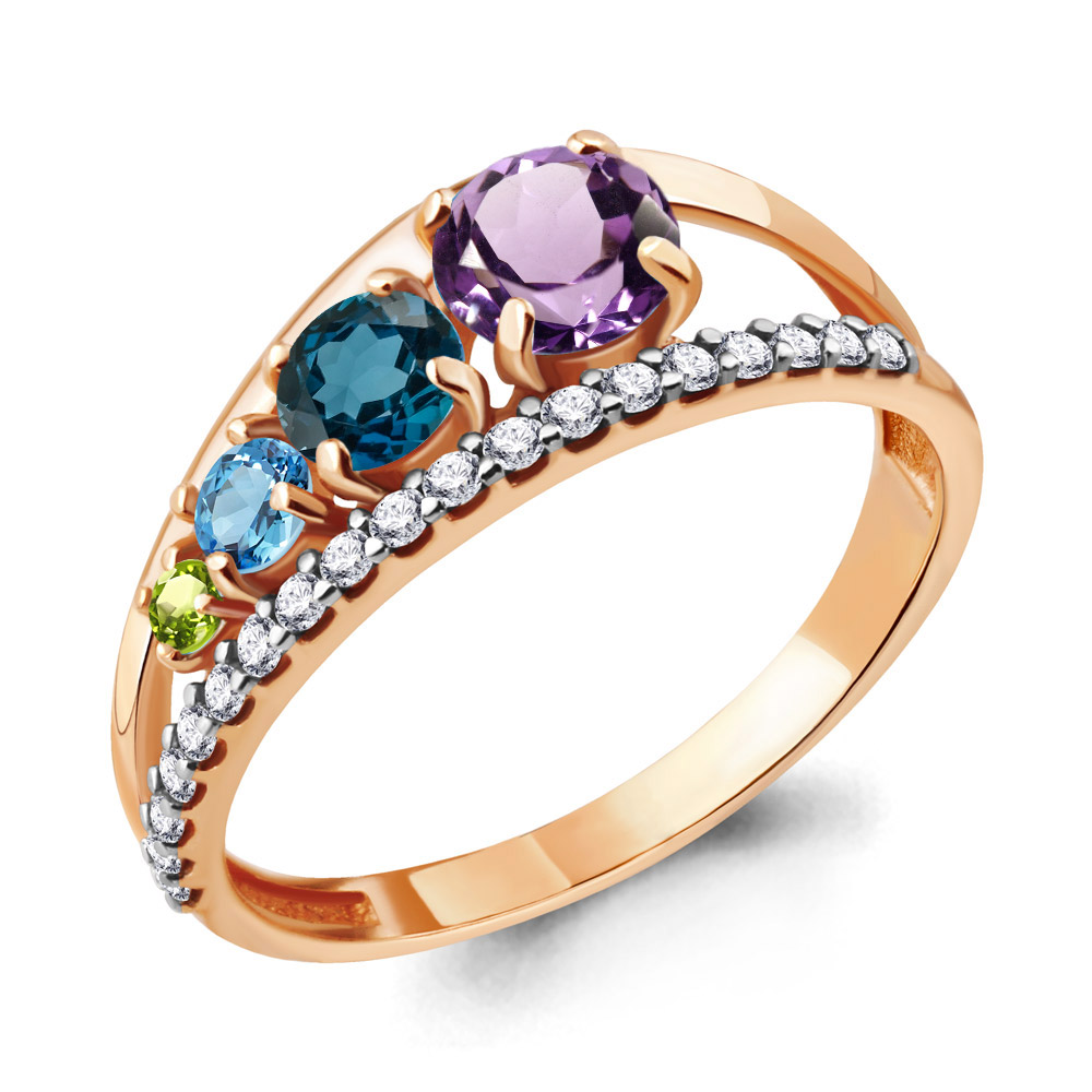 6913452А Кольцо из Серебра с аметистом, топазом лондон блю, топазом свисс блю, фианитами, хризолитом