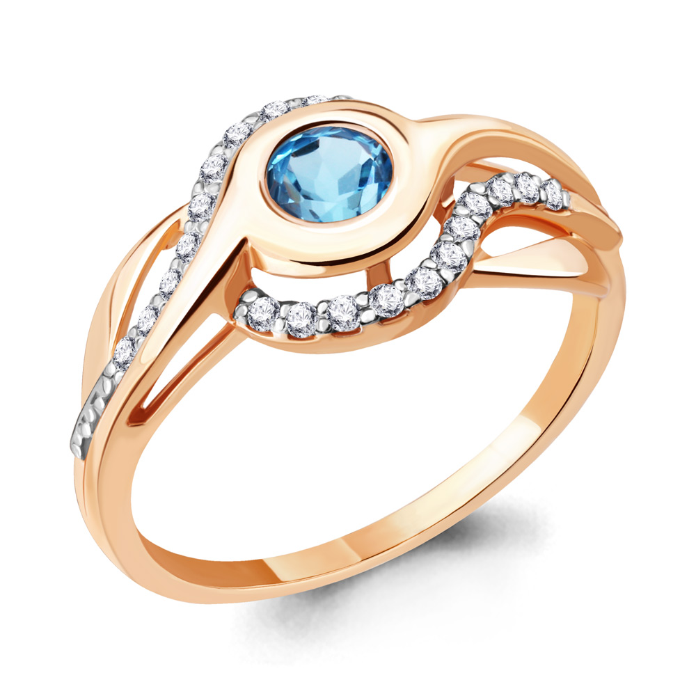 6916005А Кольцо из Серебра с топазом свисс блю, фианитами