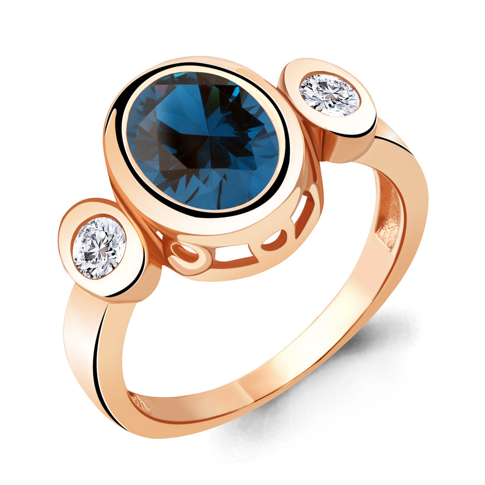 6917193А Кольцо из Серебра с нанотопазом лондон, фианитами