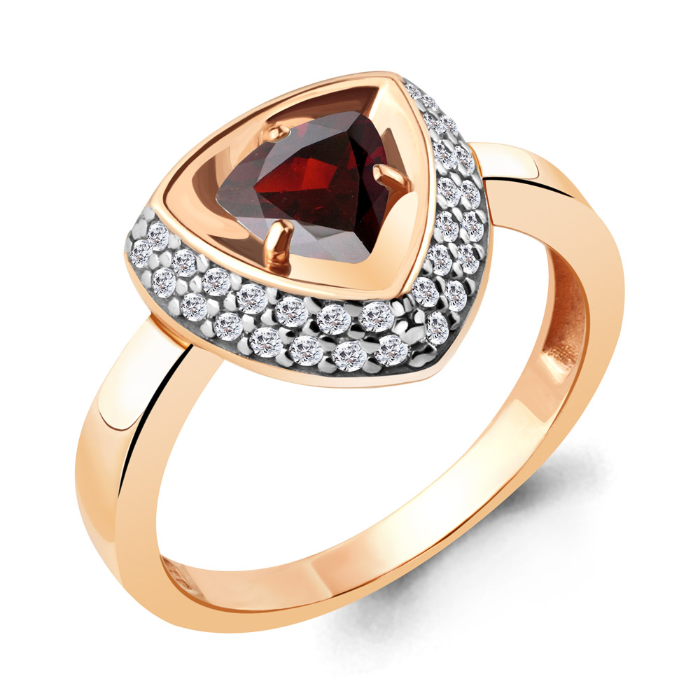 6917203А Кольцо из Серебра с гранатом, фианитами