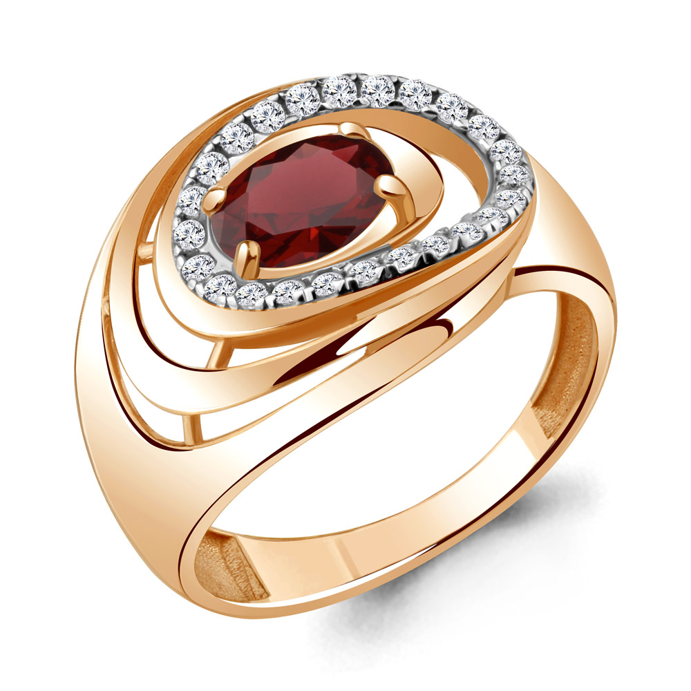 6917403А Кольцо из Серебра с гранатом, фианитами