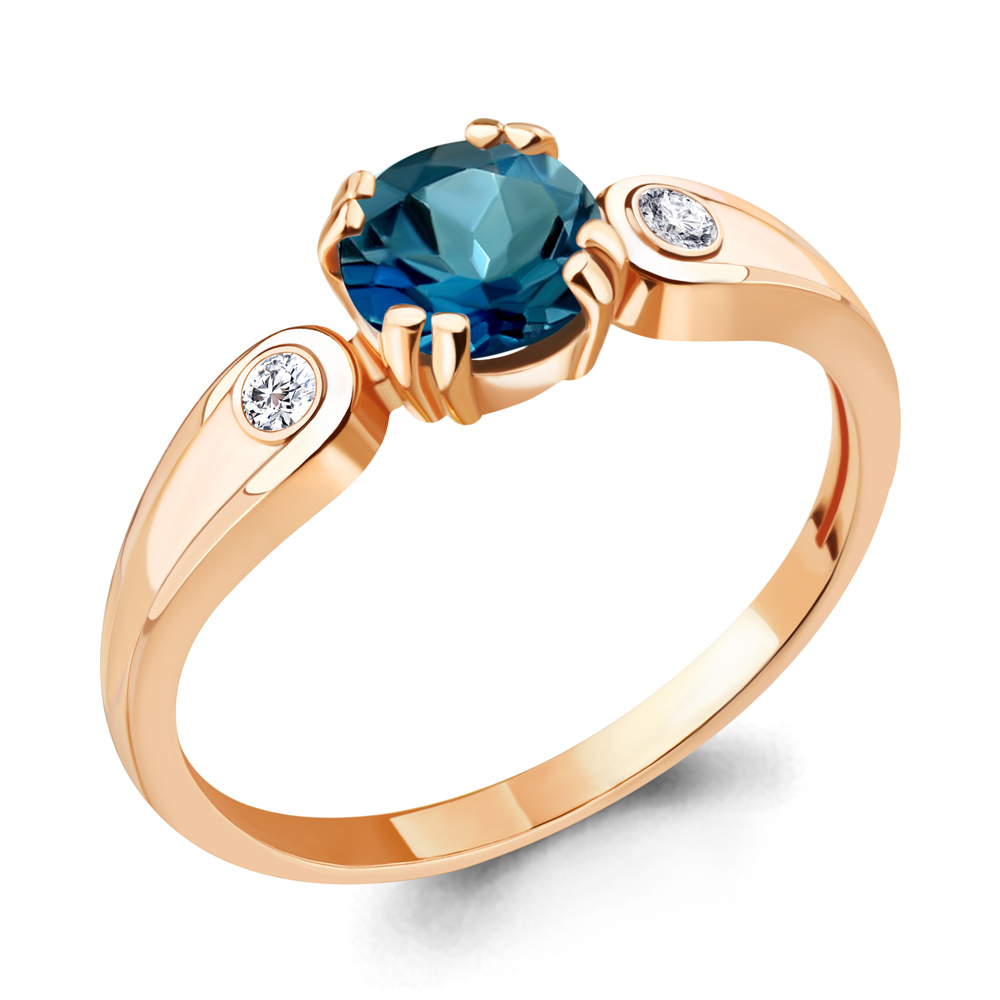 6927708А Кольцо из Серебра с топазом лондон блю, фианитами