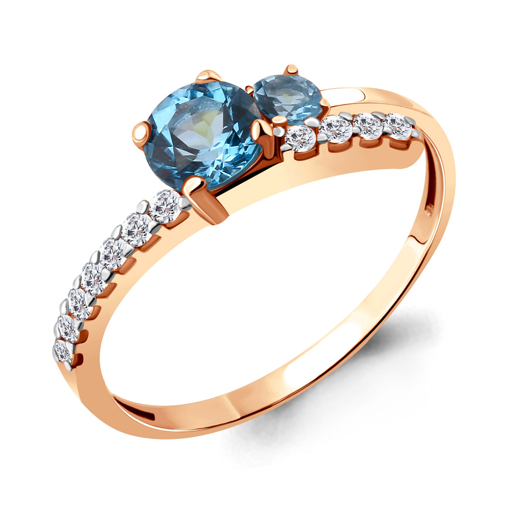 6928605А Кольцо из Серебра с топазами свисс блю, фианитами