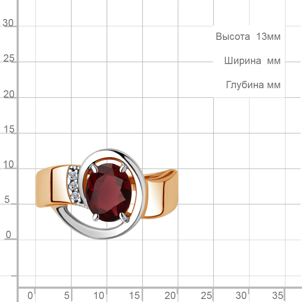 6932603А Кольцо из Серебра с гранатом, фианитами