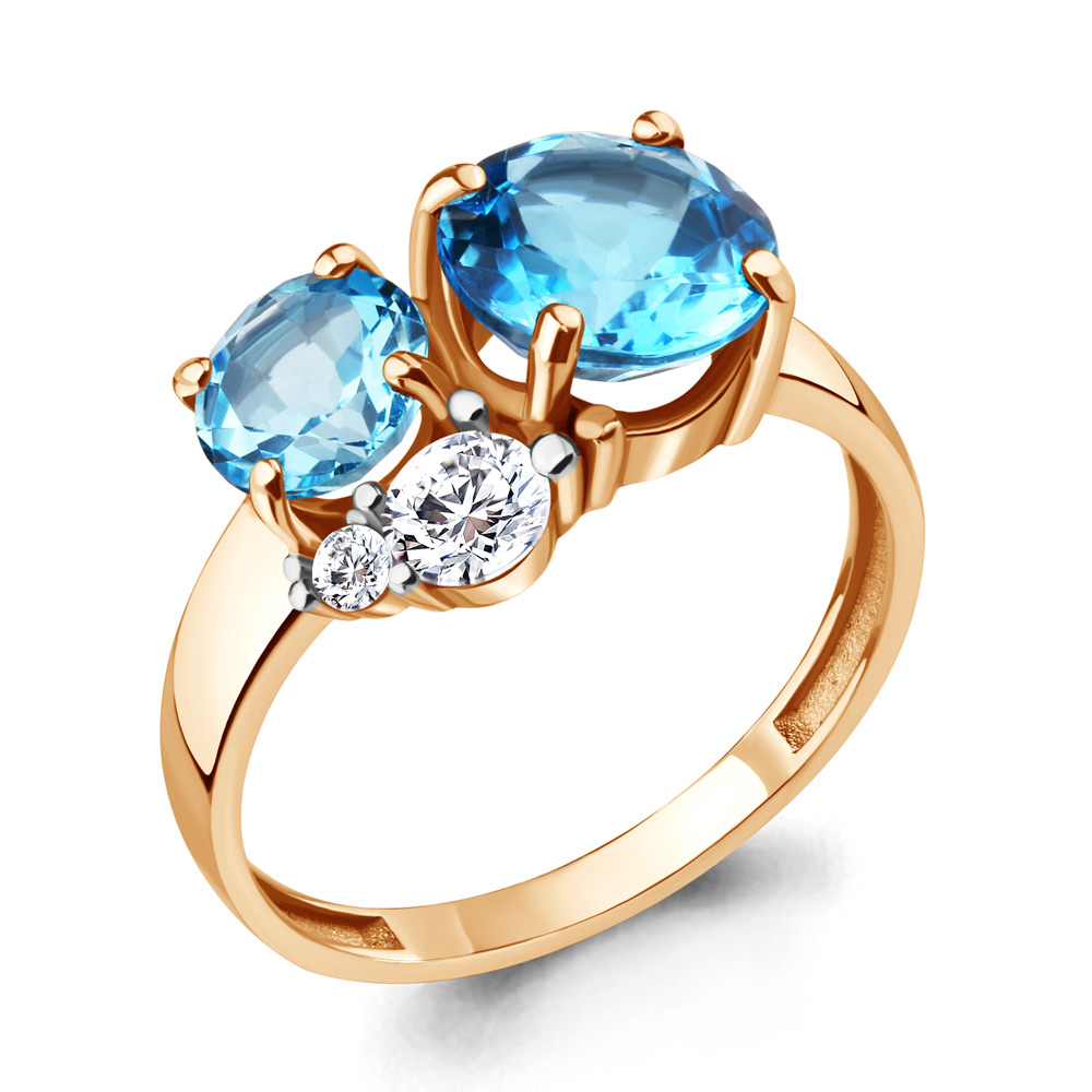 6934405А Кольцо из Серебра с топазами свисс блю, фианитами
