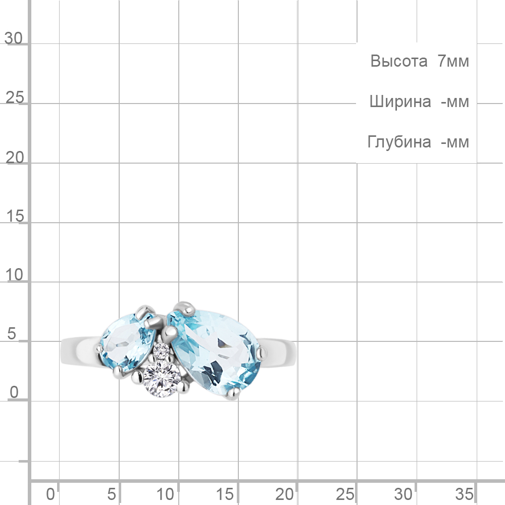 Описание камней 1 Топаз Скай Блю; 1 Топаз Скай Блю; 1 Фианит; 1 Фианит