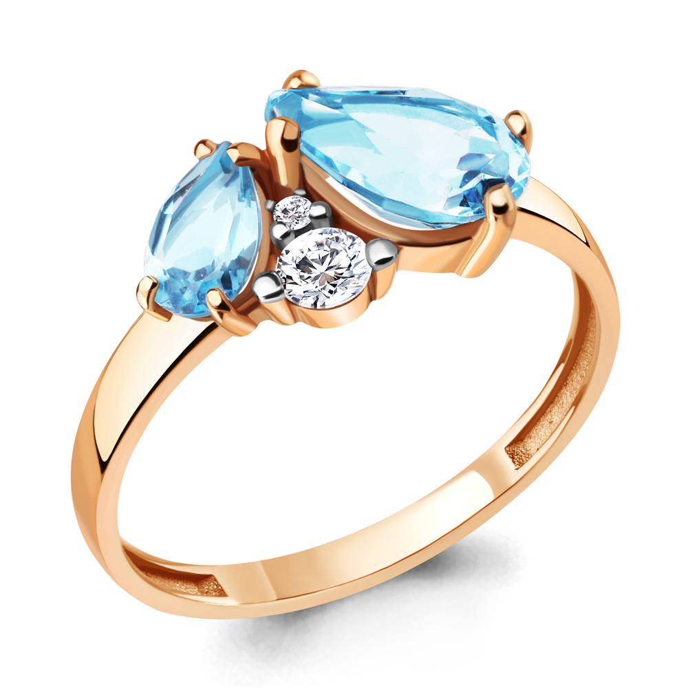 6934602А Кольцо из Серебра с топазами скай блю, фианитами