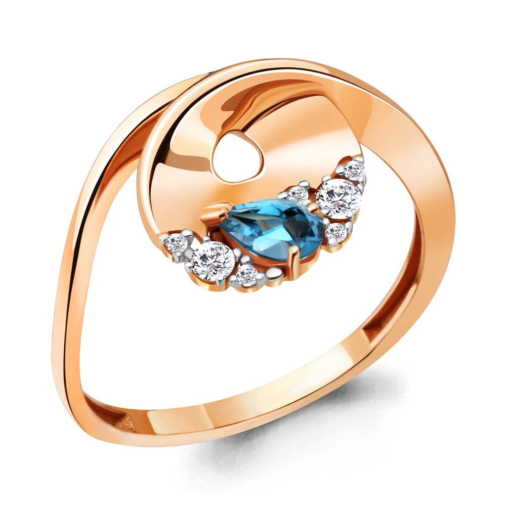 6937008А Кольцо из Серебра с топазом лондон блю, фианитами