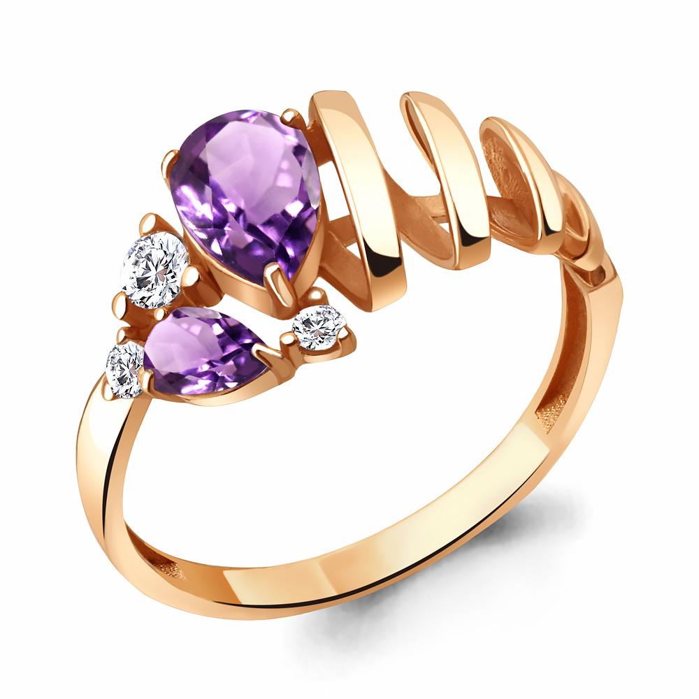 6937504А Кольцо из Серебра с аметистами, фианитами