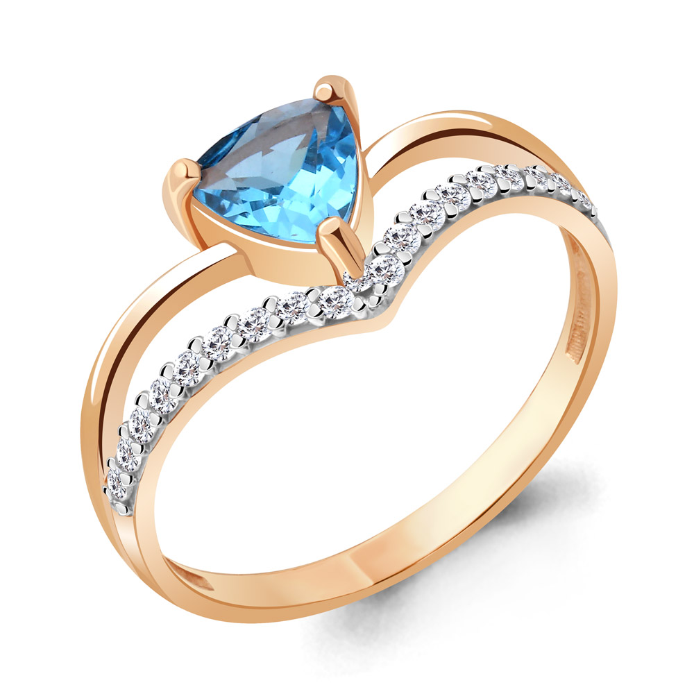 6938505А Кольцо из Серебра с топазом свисс блю, фианитами
