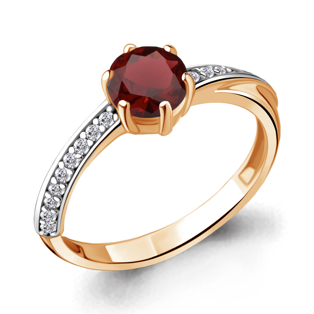 6938703А Кольцо из Серебра с гранатом, фианитами
